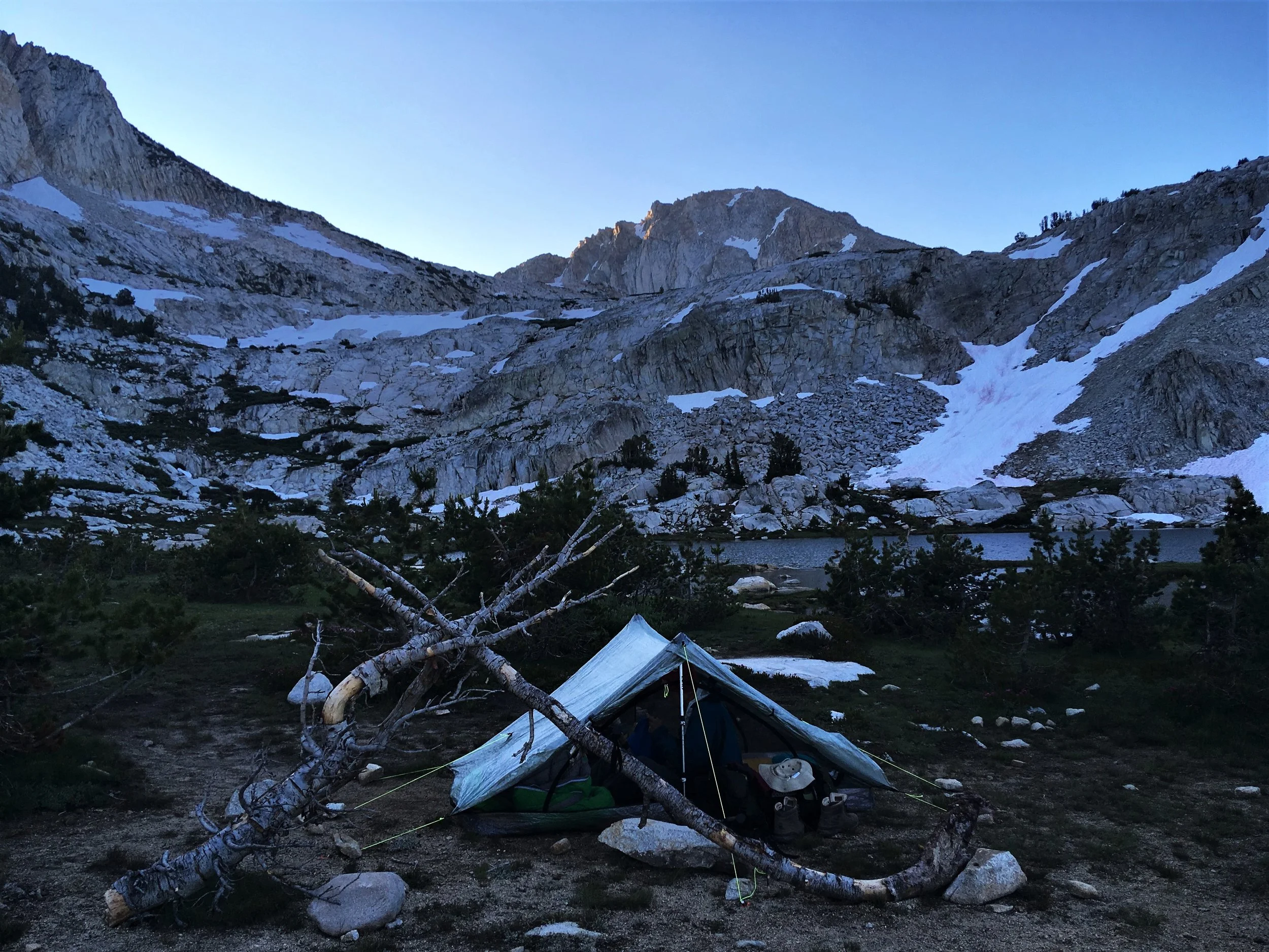 Daybreak at camp beneath Silver Pass